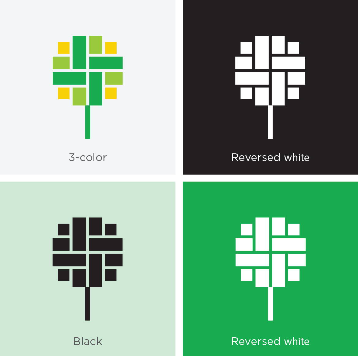 The brand color pallets are green and yellow. Green is the old color of the brand that alludes the color of money as well as the tree. Yellow is added to create a warm highlight that embodies energy and happiness. Yellow green are used to create connection and provide a fresh and modern feel for the brand.