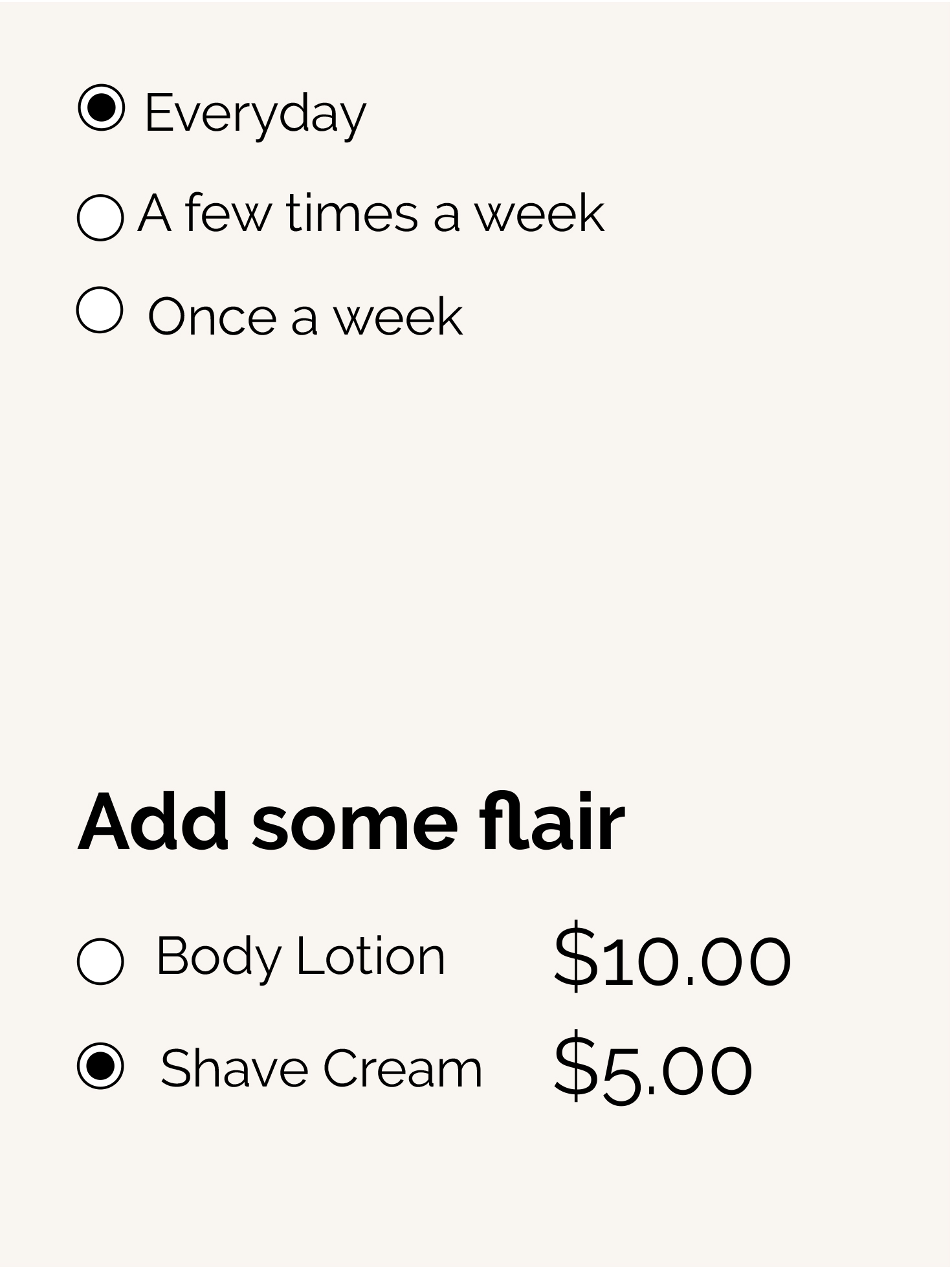 I studied current razor marketplace and women shaving experience. I interviewed women of different ages and backgrounds about how they choose razor, what they experience, and what they like or dislike about shaving.