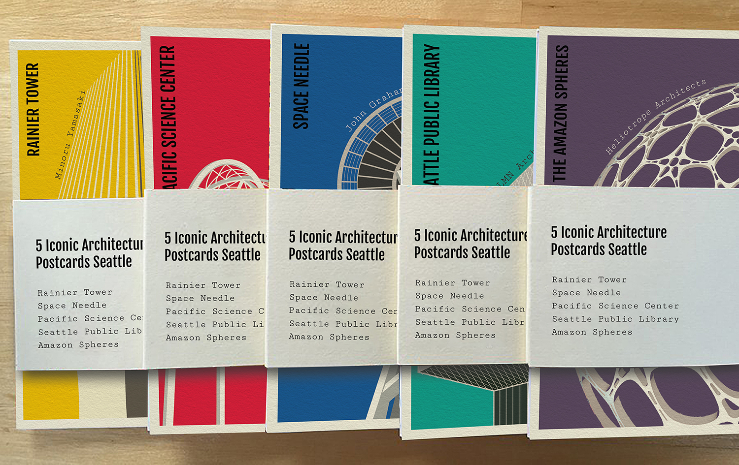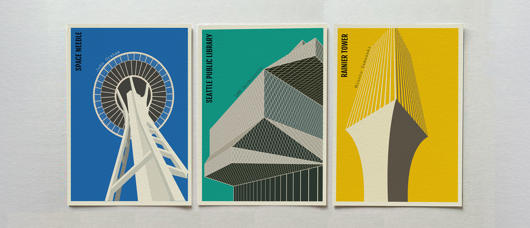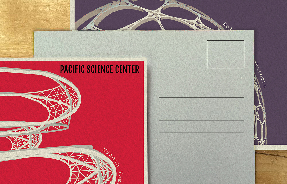 Postcard series that pay homage to the iconic architectural buildings in Seattle by outlining their emblematic and distinctive characteristics.